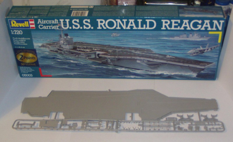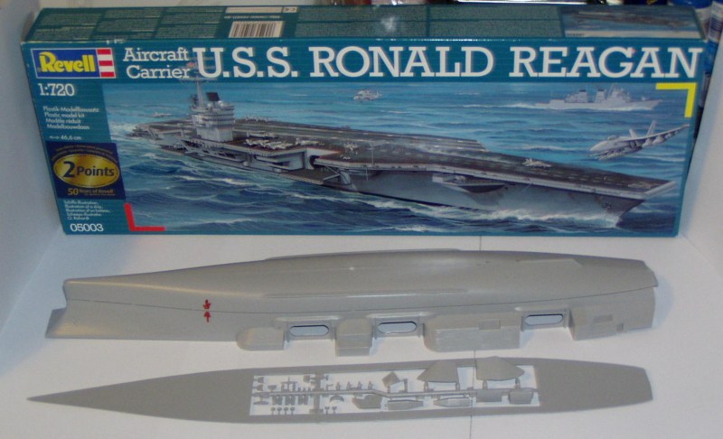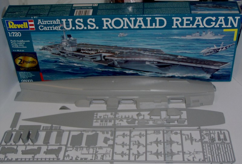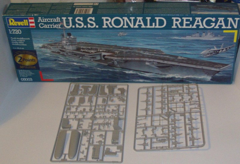 Bausatz: Erstmalig erschien dieser Bausatz im letzten Jahr bei Italeri. Jetzt ist er von Revell erhältlich. Grundsätzlich beinhaltet er die schon bekannten Teile der div. Auflagen von Nimitz-Trägern, welche durch Beigabe von neuen Teilen den Bau des neusten Flugzeugträger der USA ermöglichen.