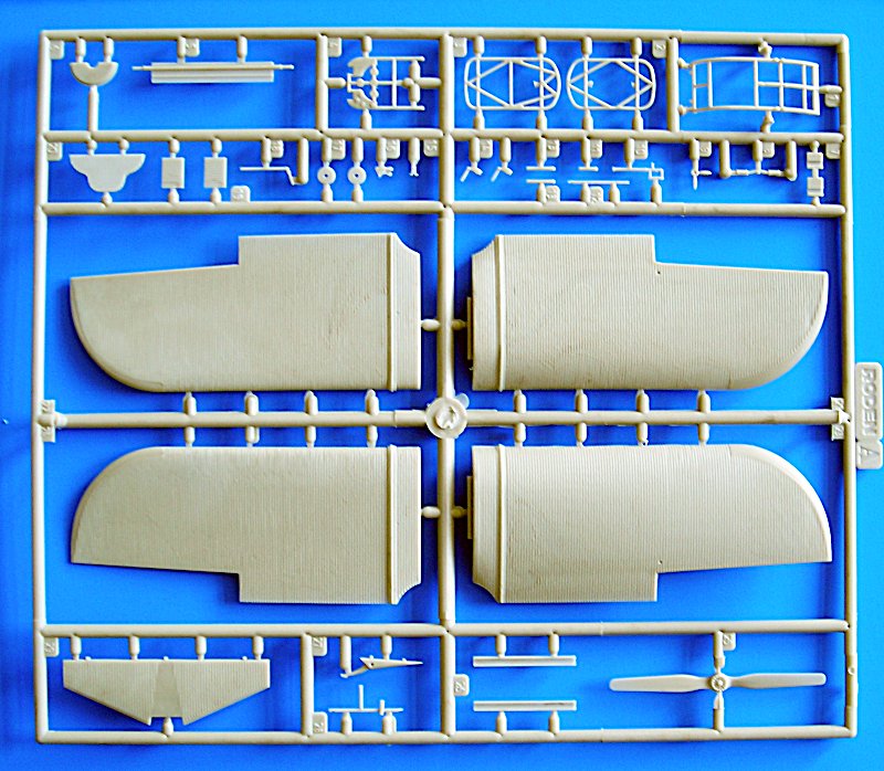 Das Plaste wirkt etwas schlierig, aber die Teile sind sauber und vollständig abgespritzt und haben kaum Grat. Die Hinterkanten der Steuerflächen sind ziemlich scharf. Nur beim zweiteiligen Flügel muss man wohl etwas nacharbeiten. Die Wellblechdarstellung halte ich für sehr gelungen, so dass einem schönen Modell kaum etwas im Wege steht. Mit ein paar Ätzteilen kann der Superdetaillierer aber sicher noch deutliche Verfeinerungen erreichen.
