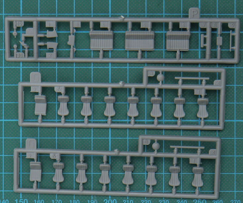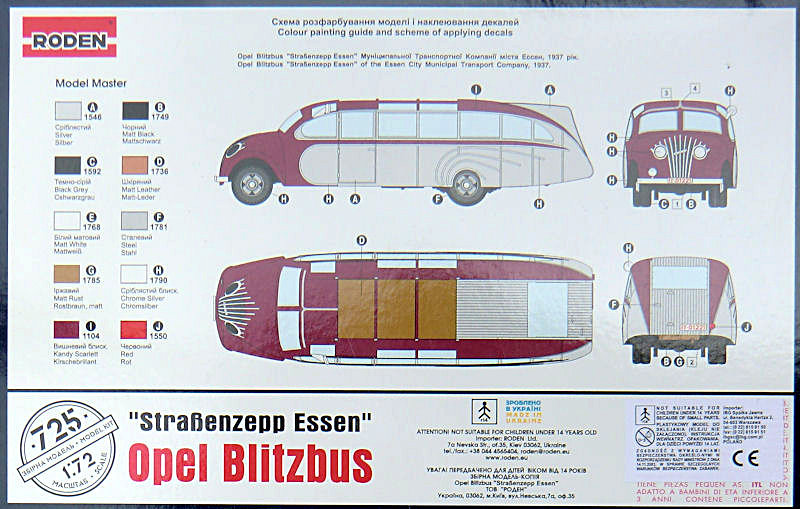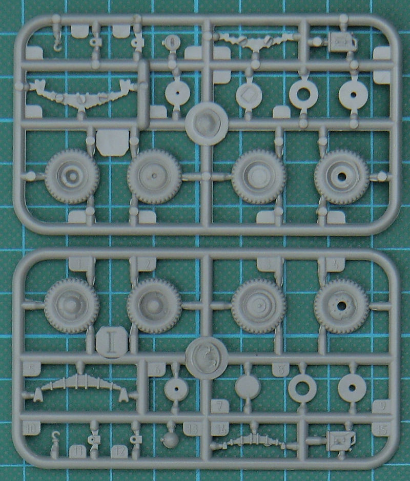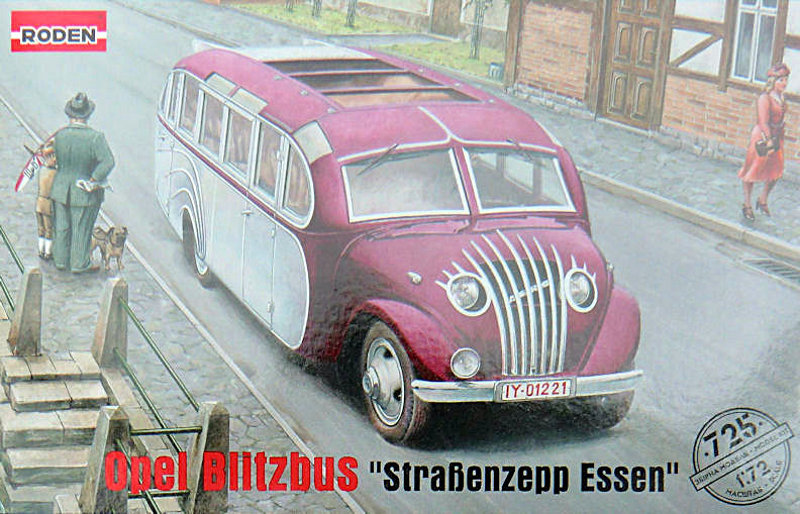 Bausatz: Die Busversionen der Lkws bis 1945 wurden von den Modellbauherstellern bisher völlig vernachlässigt. So begrüße ich es sehr, dass RODEN aus der Ukraine gleich zwei verschiedene Busse im Maßstab 1/72 herausbringt. In der attraktiven aber unpraktischen Schüttbox befinden sich gut verpackt fünf sechs Spritzlinge mit 107 Teilen, ein Fotofilm, ein Decalbogen und die Bauanleitung. Die Bauteile sind in der typischen Qualität von RODEN und benötigen z. T. etwas Nacharbeit. Entsprechend des Vorbilds gibt es erhabene und versenkte Strukturen.