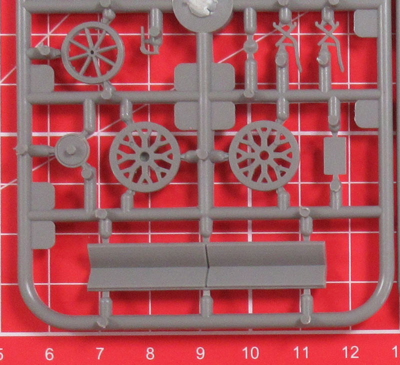 Die Speichenräder entstehen aus jeweils drei Teilen. Das Oberdeck ist auch gut nachgebildet. Das passende Werkzeug gibt einzeln dazu. Hier muss man nicht ein Relief bemalen. Toll gemacht! Leider haben die Scheinwerfer kein Glas.