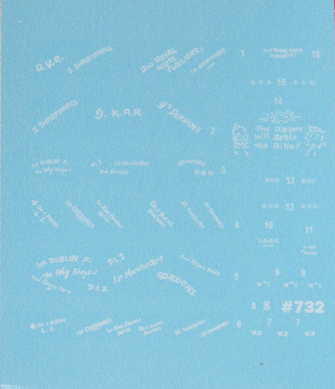 Der Decalbogen hat einige Beschriftungen. Die Farbhinweise beziehen sich auf das System von Vallejo.