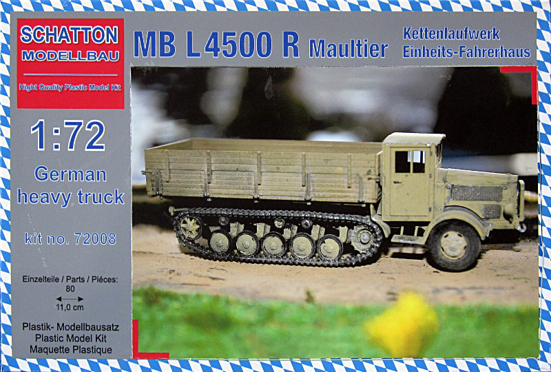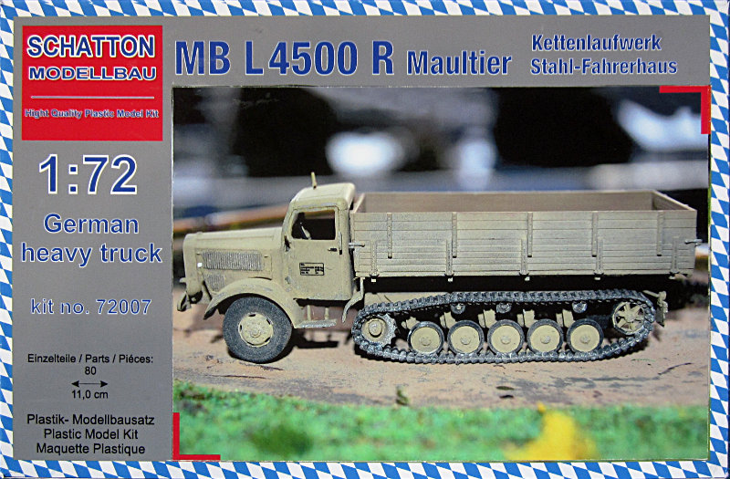 Vorbild: Der Mecedes Benz L4500 wurde ab 1939 in der S(traßen) und später ab 1941 auch in der A(llrad)-Version hergestellt. Der 6-Zylinder Dieselmotor OM 67/4 hatte eine Leistung von 112 PS. Angetrieben wurde der Lkw in beiden Versionen von einem 5-Gang-Schaltgetriebe.