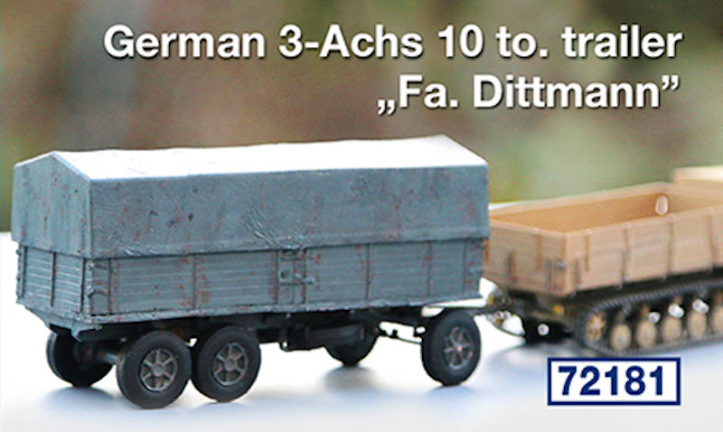Vorbild: Dittmann Fahrzeugbau aus Berlin-Wittenau stellte im WK II 3-Achs-10-Tonnenanhänger für unterschiedliche Abnehmer her. Diese wurden auch im damaligen Protektorat in Lizenz bei Christioph & Unmack in Niesky gebaut. 1944 gab es bei der Wehrmacht im Heer 44 Kraftwagen Transportabteilungen mit einer Kapazität von 250 bis 500 Tonnen. Die Anhänger wurden auch bei der Luftwaffe, dem NSKK und der Deutschen Reichsbahn eingesetzt. Als Zugfahrzeug war mindestens ein 5-Tonnen-Lkw notwendig.