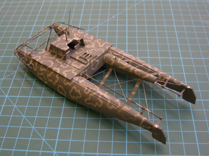 Vorbild: Das Sprengboot Tornado war als billige Alternative zum hochgezüchteten Torpedo gedacht. Es war eine Kombination aus Argus As 014 Schubrohr und Schwimmern, die mit Sprengstoff beladen waren. Die Idee wurde 1944 geboren. In Travemünde entstand auch noch ein Prototyp. Dieser bestand aus einem Argus-Rohr und zwei Ju 52 Schwimmern. Für 700 kg Sprengladung war dieses Boot ausgelegt, welches ferngesteuert ins Ziel laufen sollte. Bei Erprobungen lief das Boot gut 48 kn.