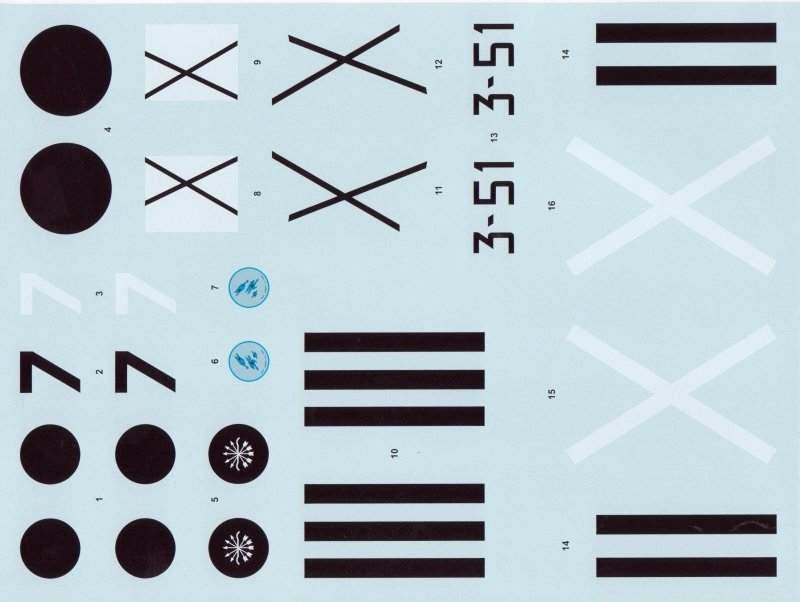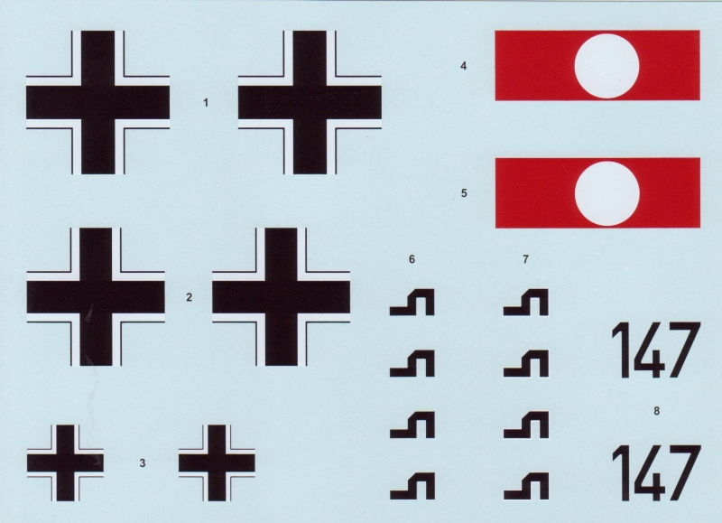 Sechs Tarnungsversionen der drei größten Benutzern dieses Flugzeuges (Italien, Frankreich, Deutschland) ist eine ziemlich erhebliche Auswahl, die jedoch den größeren Teil der Käufer zufriedenstellen soll. Persönlich bin ich der Meinung, dass es das interessanteste Anstreichen in der spanischen Variante gibt. Wenn ihr euch die Blätter genau anschauen, merkt ihr bestimmt, dass man aus allen Zeichen (die wir zur Verfügung haben) alle Markierungen ausführen kann, die man auf den Luftwaffe - Flugzeugen je gesehen hat. Das geschieht sehr selten und wird gar nicht in der Anleitung erwähnt.
