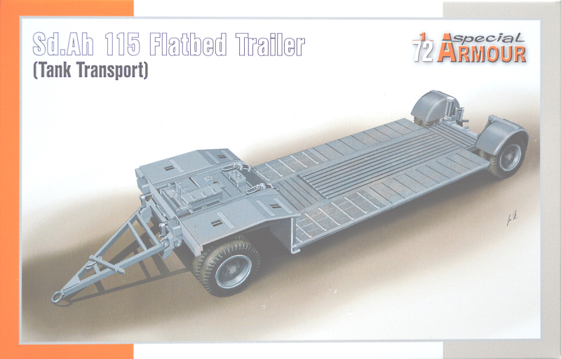 Vorbild: Der Tiefladeanhänger für Panzerkampfwagen 10t (Sd.Ah. 115) diente zum Transport von Panzerfahrzeugen bis 10t. Er wurde sowohl von 9t Lkw der Marken Büssing-NAG und FAUN und vom Sd. Kfz. 7 m. Zgkw. 8t gezogen. Der Sd. Ah. 115 wurde im April 1938 offiziell eingeführt.