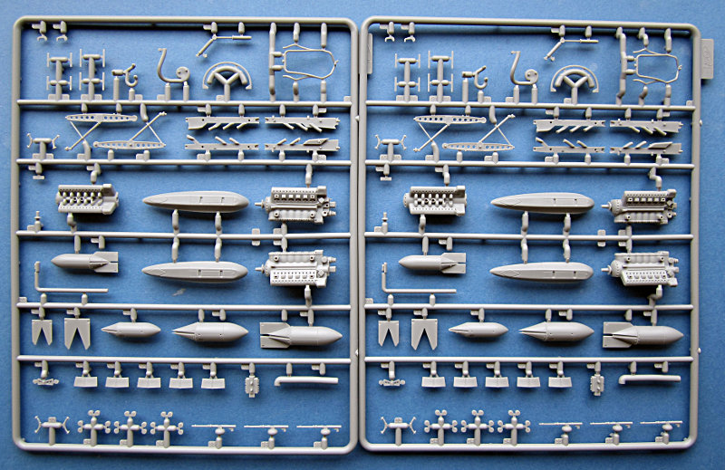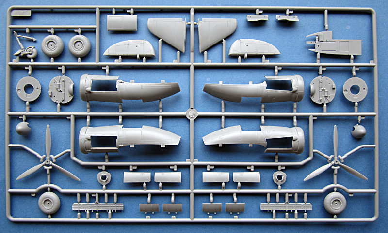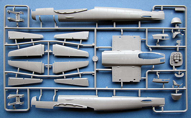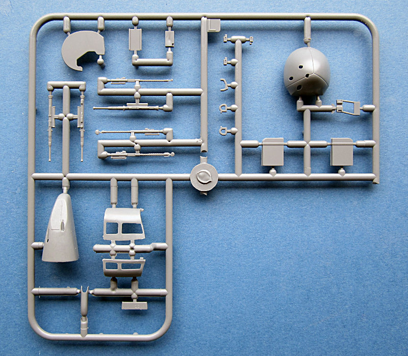 Special Hobby hat dazu viele für den Zerstörer bzw. Nachtjäger benötigte Teile in Spritzguss und Resin beigelegt. Neben den Fahrwerksklappen, Rädern und Flammvernichtern finden letztere im Cockpit Verwendung unter Anderem gibt’s auch den berühmt-berüchtigten Fahrradsattel. Die Spritzgussteile umfassen die Nase, Bola und die Bewaffnung samt Munition, die bei Dragon nicht enthalten war. Auch einen klaren Spritzling hat SH erstellt, mit neuer Kanzel für die Variante ohne vorderes Abwehr-MG und Heckteil mit einer Linsenlafette sowie dem Revi. Fotoätzteile liegen nicht bei, man kann aber für Gurte und einige weitere Cockpitdetails auf Sätze anderer Hersteller zurückgreifen.