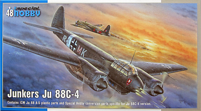Bausatz: Die Ankündigung von Special Hobby in Kooperation mit ICM einen Bausatz herauszubringen war etwas überraschen. Normalerweise läuft das eher umgekehrt, das Special Hobby für eine andere Firma produziert. Nun diesmal wurden die Spritzlinge der Ju 88A-5 von ICM für die Edition der Junkers Ju 88 C-4 genutzt. Vorzüge und Macken dieses Bausatzes sind hinreichend dokumentiert und viele davon können durch Zubehörteile (z.B. Vector, AIMS und/oder Eduard) behoben werden.