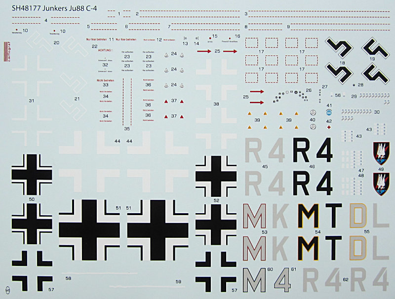 Die Abziehbilder wurden bei Cartograf gedruckt und sind, wie nicht anders zu erwarten, von sehr guter Qualität. Selbst der rote Punkt in den Kokarden der Abschussmarkierungen sitzt zentrisch im blauen Kreis!