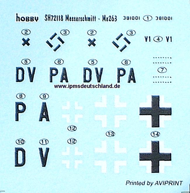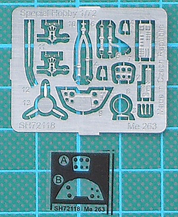Bausatz: or gut zehn Jahren baute ich mal die Me 263 von HUMA. Nun hat sich special hobby des Themas angenommen. Hier haben wir es wieder mit einem typischen special hobby-Bausatz zu tun. Ein hellgrauer Spritzgussrahmen mit z.T. fein detaillierten Teilen und aber auch recht klobigen Kleinteilen. Dazu kommen noch ein paar Resinteil (Räder und Kleinteile) und ein Ätzteilbogen mit Fotofilm. Die Kanzel ist aus Spritzgussmaterial. Das Cockpit ist sehr gut detailliert. Es gibt auch einen ordentlichen Hauptfahrwerksschacht, der eigentlich gar nicht nötig ist. Alle Fotos zeigen die V1 mit fixiertem Hauptfahrwerk. Hier muss ggf. umgebaut werden. Die Decals sind für die bekannte V1 DV+PA.