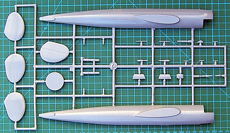 Bausatz: Schon im IPMS Deutschland Journal (I.P.M.S. Mitteilungen 6-2001) hatte ich einiges zum Bausatz gesagt. Dr. Busse hatte sich in der Kit Flugzeug 3/2003 ausführlich mit den Konturen beschäftigt und einige Änderungen vorgeschlagen. Diese betreffen insbesondere die Verkleinerung des Seiten- und Höhenleitwerkes. Die Spannweite des Modells hatte ich schon damals bemängelt. Sie ist zu groß. Während der ganzen Lebensdauer des Originals war sie bei 38,9 m. Von jeder Tragfläche müssen 2,6 cm entfernt werden. Man kann sich bzgl. der Kontur wunderbar an die Bemalungsanleitung halten.