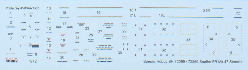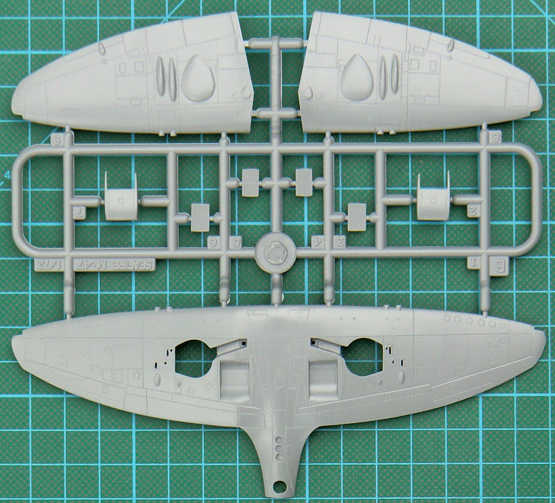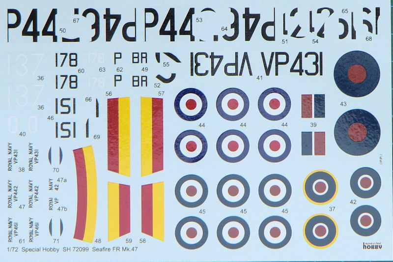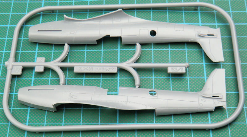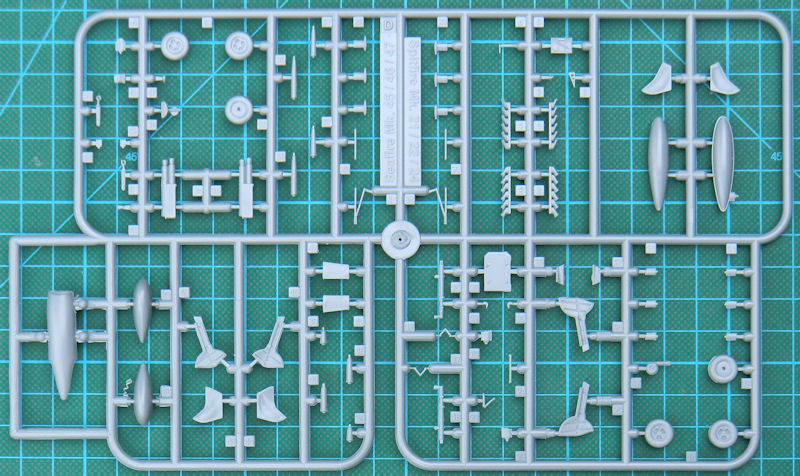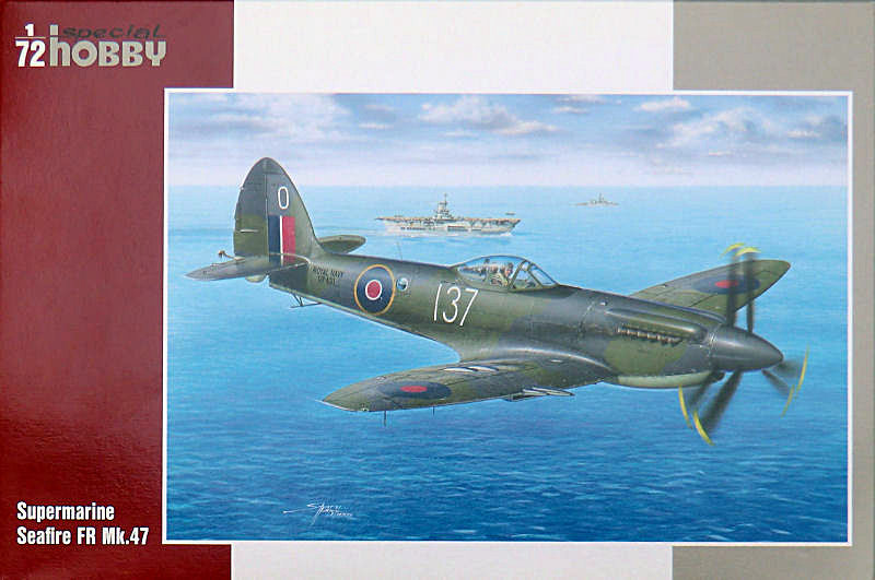 Bausatz: Nach den Bausätzen der Supermarine Seafire Mk. 47 in 1/72 von CMR und den anderen späten Spitfire und Seafire von special hobby gibt es hier den Bausatz vom letzteren Hersteller. special hobby. Dieser Spritzgussbausatz ist recht gelungen. In dem praktischen Stülpkarton befinden sich gut verpackt vier Spritzgussrahmen mit 143 (!) Teilen, ein Klarsichtrahmen mit elf Teilen, ein Decalbogen und die typische Bauanleitung. Ein paar Teile wandern in die Restekiste. Die Strukturen sind sehr gelungen und für eine Lackierung mit der Spritzpistole optimal. Trotzdem ist es ein Short-Run-Bausatz.