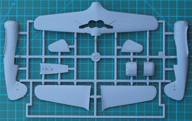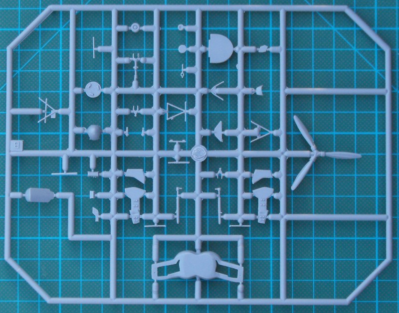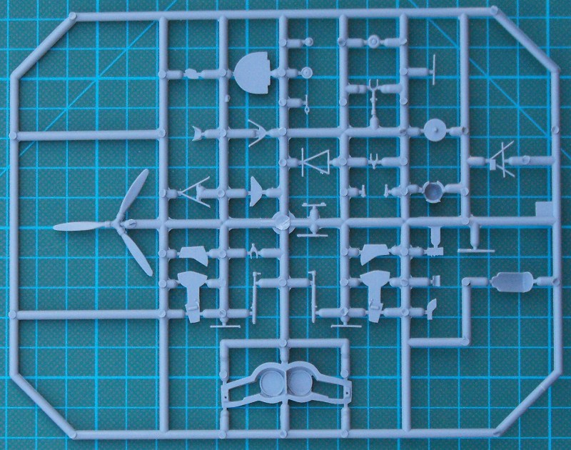 Die Qualität der Spritzgussteile ist recht ordentlich. Alle Gravuren sind recht fein und daher sollte sehr sparsam mit Farbe umgegangen werden. Die Kanzel besteht aus klarem Spritzgussmaterial. Die Resinteile beinhalten den Motor samt Halterung, die Hauptfahrwerksräder (leider nicht abgeflacht) sowie einige Kleinteile und die Auspuffrohre. Der Fotoätzteilbogen entstammt der Schmiede von eduard. Leider sind die Sitzgurt und das Instrumentenbrett nicht farbig bedruckt. Die Teile sind insbesondere für das Cockpit gedacht. Ein Fotofilm ergänzt das Instrumentenbrett. Zuvor muss er von hinten weiß bemalt werden.