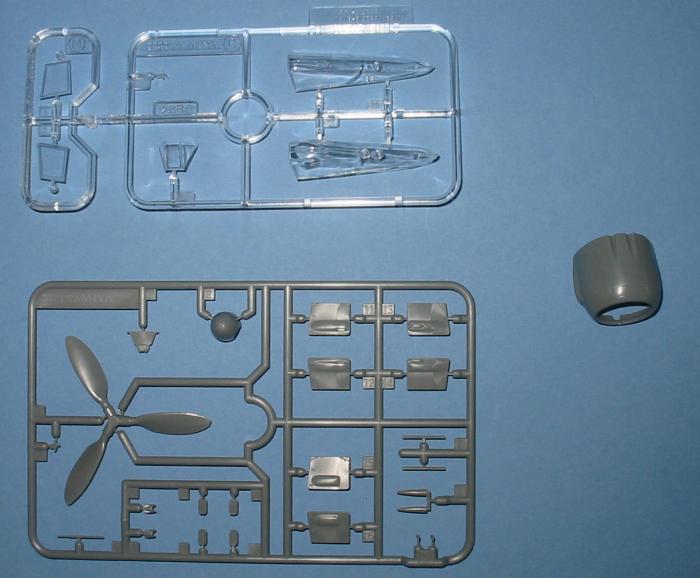 Bausatz Lange hat es gedauert, bis Tamiya sich endlich bequemt hat den F-8 Bausatz als normale A-8 herauszubringen. Jedoch, das Warten hat sich gelohnt. Alle Teile des Ursprungsbausatz sind enthalten (es bleibt also 'ne Menge für die Restekiste übrig). Der Flügel ist so modifiziert, dass die Waffenabdeckungen für MG 151/20 oder MK 108 angebracht werden können. Es liegen 2 zusätzliche Klarteile für die Scheuklappen bei. Für die durchsichtigen Bauteile liegen ebenfalls vorgedruckte, aber leider nicht gestanzte Masken bei und schließlich liegen die Seitenpanzerungen als "Aufkleber" bei. Damit habe ich so meine Befürchtungen, aber ich werde sie wohl für den Bau verwenden, da ich das Modell aus der Kiste bauen will (bis auf Räder und Gurte vielleicht...).