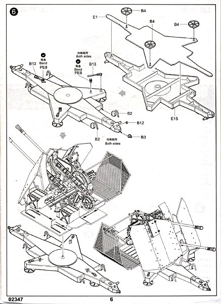 Dank der 6-seitigen, übersichtlichen Bauanleitung, dürfte der Zusammenbau ohne größere Probleme von der Hand gehen. Die beigelegten Ätzteile sind überwiegend für das seitlich angebrachte Hülsenfangnetz. Sehr sauber und ordentlich gefertigter, in typischer Trumpeter Qualität, Plastik Kit. Auch bei diesem Bausatz wurden die sehr filigranen Teile des Rahmens für das Hülsenfangnetz nochmals extra gegen Bruch verpackt.