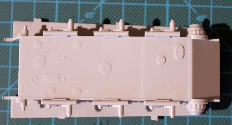 Bausatz: In dem Karton befindet sich Trumpeter üblich einzeln verpackt die Unterwanne, Oberwanne sowie das Turmoberteil, zwei Gießäste, zwei Gummiketten und die Bauanleitung. Alle Teile sind sauber und Gratfrei wiedergegeben.