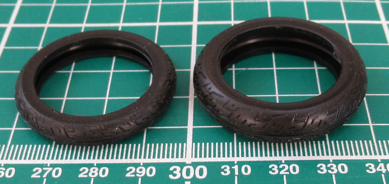 Der Zusammenbau funktioniert sehr gut nach der Bauanleitung und beginnt mit der Teleskopgabel. Hier gibt es sogar eine versteckte Federung. Gelungen ist der aus einem Teil bestehende Lenker. Auch das Rad mit Scheibenbremse ist toll. Die Reifen besitzen ein schönes vorbildgerechtes Profil. Auch die Heckschwinge ist gefedert. Ist alles mit dem Rahmen verbunden hat man die erste Hürde gewonnen.