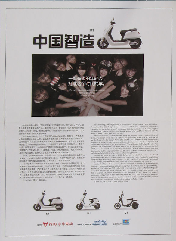 Vorbild: Der Hersteller NIU aus China ist seit einiger Zeit auch auf dem deutschen Rollermarkt aktiv. Dieses Start-Up produziert diverse Elektroroller. Dabei kooperiert man scheinbar auch mit BOSCH. Allerdings wird der Erfolg durch einem relativ hohen Preis gedämpft. In China kostet das Produkt um 800 € und in Deutschland muss man um die 2700 € für ein voll zulassungsfähiges Produkt bezahlen.