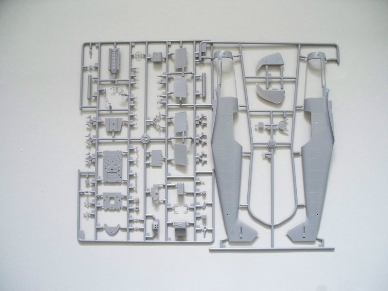 Sämtliche Steuerflächen lassen sich separat einbauen und auch der Daimler Benz Motor kann sich sehen lassen. Um dieses kleine Extramodell auch zu zeigen, befinden sich die Wartungsklappen an der richtigen Stelle. Da die untere Zugangsklappe auch von innen voll detailliert ist, kann auch dort eine geöffnete Position in Erwägung gezogen werden. Das Cockpit ist dem Original angemessen wiedergegeben.