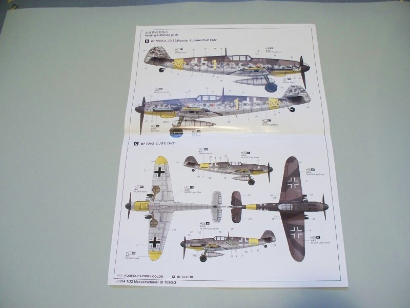 So wurden wieder aufgenommene Weiterendwicklungen ab 1942 storniert und die bewährte 109 Reihe wurde mit einem stärkeren Daimler-Benz DB 605 versehen und ab Juli 1942 als Me-109 G der Truppe übergeben. Die G-2 hatte noch nicht die später ab der G-5 Serie charakteristischen Beulen am Vorderrumpf. Der äußere Unterschied zur Friedrich war eine stärker gerahmte Kabinenhaube bei der die kleinen winkligen Fenster am Rumpfansatz wegfielen.