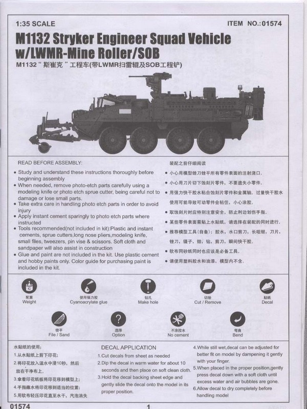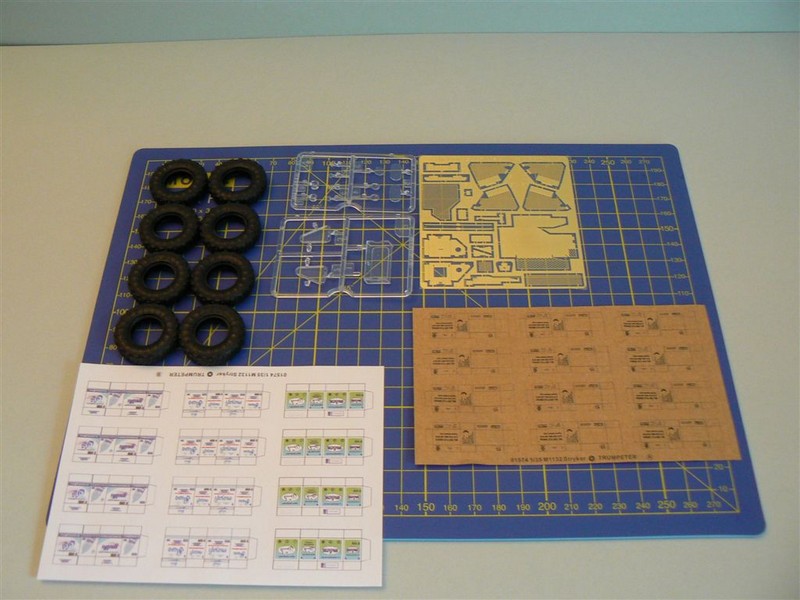 Fazit: Ich finde ein hervorragender Bausatz mit einem super Preisleistungsverhältnis. Im Laden kostet der Bausatz 23,99 Euro und das bei über 700 Teilen. Besser geht es nicht mehr. Detaillierung und Passgenauigkeit sind nach bisheriger Erfahrung sehr gut, denn ich habe bereits einige Stryker dieser Firma gebaut. Die Stryker des Herstellers AFV Club mögen etwas stimmiger sein, der Trumpeter Stryker steht auf etwas hohen Füssen, aber dafür ist der Koreaner doch mindestens um die Hälfte teurer als der chinesische Mitstreiter. Trumpeter wird auch den M1132 Stryker ESV w/SMP- Surface Mine Plow/AMP auf dem Markt bringen. Dieser Bausatz hat dann über 900 Teile. Auch alle anderen restlichen Fahrzeuge des Strykers bis auf den M 1128 MGS, sind angekündigt. Aber auch dieser wird von Trumpeter erscheinen. Hier war AFV Club ein wenig schneller.