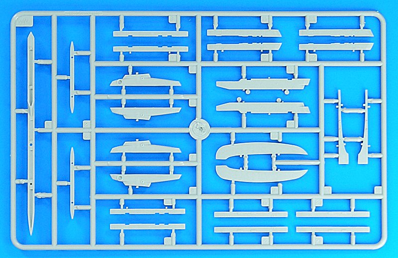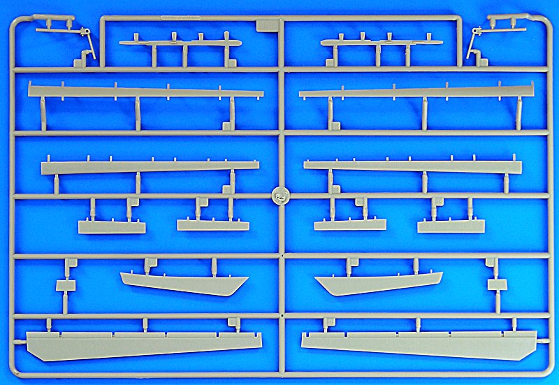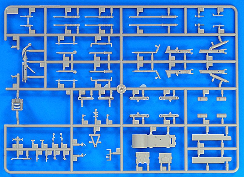 Modellbausatz: Der riesige, stabile Karton in bekanntem Trumpeter Layout ist bis zum Rand mit Plastikteilen gefüllt, so dass ich wirklich Probleme hatte alles wieder in ihm zu verstauen. Die Spritzguss-Qualität entspricht dem von Trumpeter gewohnten. In der kleinen seitlichen Box befinden sich weitere Spritzgussteile, einige Metallteile für das Fahrwerk und Gummireifen.