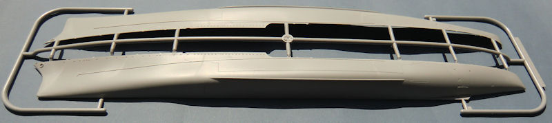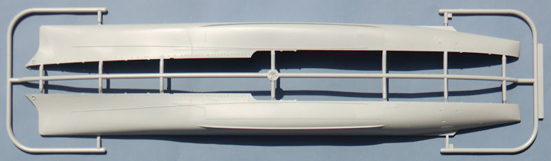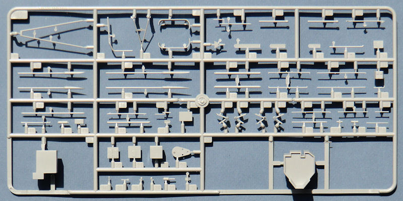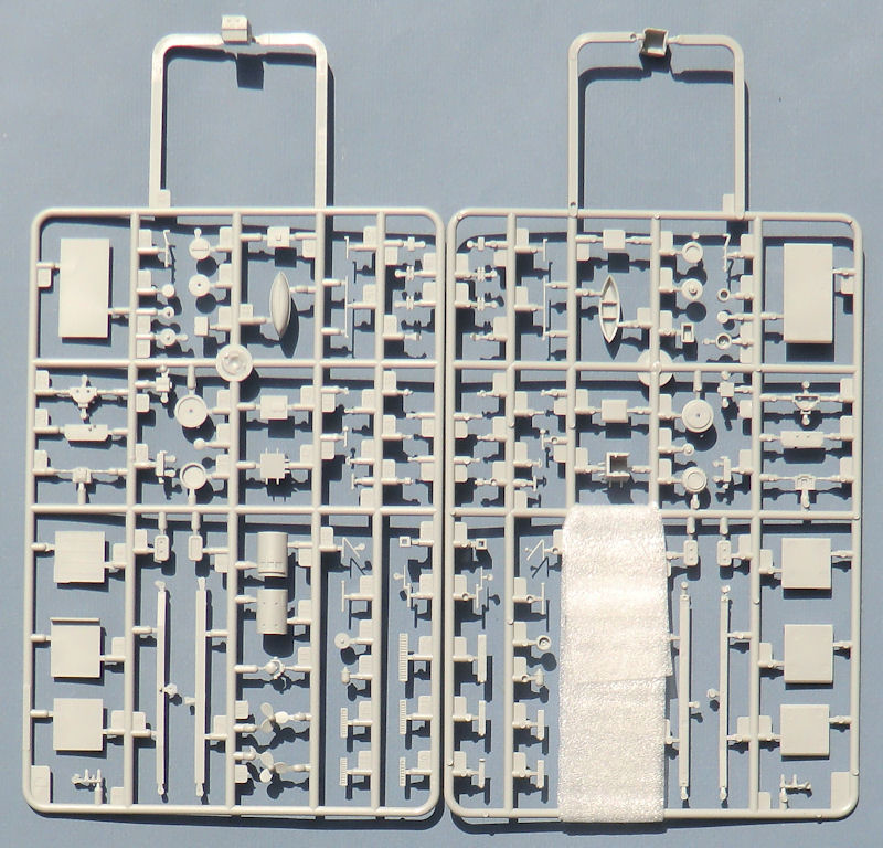 Ein erheblicher Unterschied zum ACADEMY-Kit fällt sofort ins Auge. Der Rumpf ist hier Längsgeteilt. Das freut alle, die ein Ganzrumpfmodell wünschen. Es gibt sehr gut gemachte Fotoätzteile. Aus denen werden die Gitterkonstruktionen der Krane hergestellt. Die Bordflugzeuge entstehen aus Klarsichtmaterial.