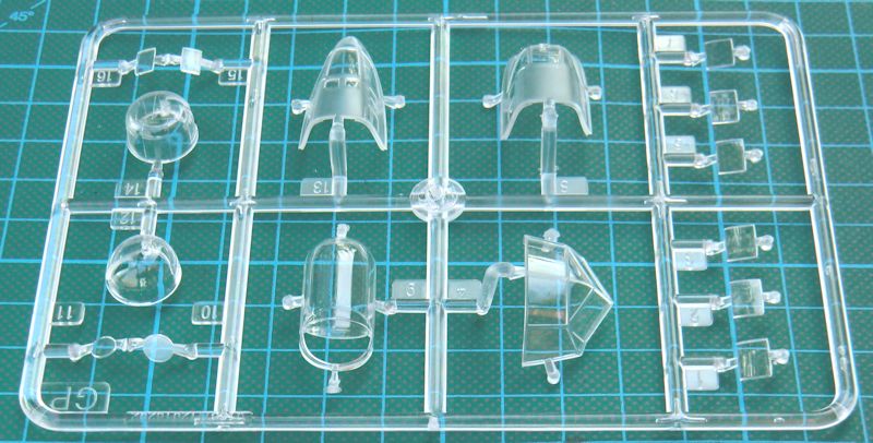TRUMPETER hat eine komplette Inneneinrichtung inklusive der Tanks nachgebildet. Auch im Cockpit findet man eine solide Einrichtung. Die Instrumente werden mittels Decal nachgebildet. Da ist es schon schade, dass man die Tür zu bleibt. Allerdings sind die Rumpfinnenseiten der beiden Halbschalen nicht weiter detailliert. Die kleinen Seitenfenster werden von außen eingeklebt.