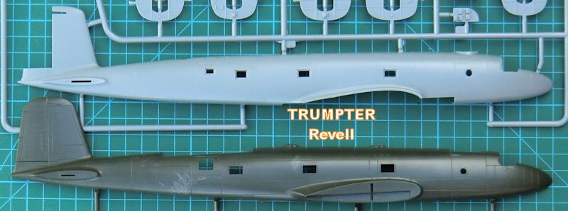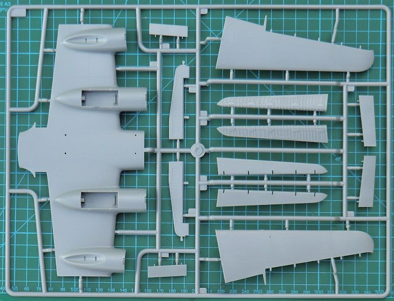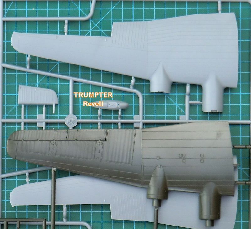 Die Abspritzung und Detaillierung der Teile ist auf dem heutigen Niveau von TRUMPETER. Klar ist auch, dass dieser Bausatz nichts mit dem von Revell zu tun hat. Es gibt geringfügige Abweichungen in der Form und in den Maßen. Sieht man sich Fotos an, so hat man bei TRUMPETER durchaus einen guten Job gemacht. Das Seitenleitwerk wirkt leider etwas eckig. Das lässt sich leicht ändern.
