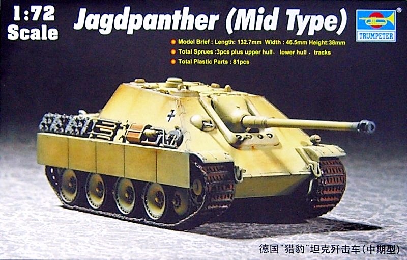 Bausatz: Trumpeter baut die Reihe seiner Militärfahrzeuge im Maßstab 1/72 Stück für Stück aus. So erschien auch ein Jagdpanther als sogenannter "Mid Type".