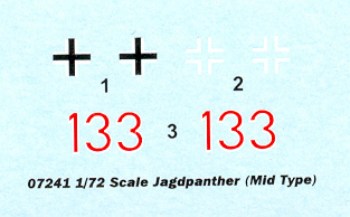 Die Bemalungsanleitung enthält Hinweise für zwei nicht näher benannte Fahrzeuge. Auf blauem Trägerpapier wurden die Decals versatzfrei gedruckt.