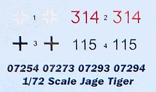 Der Decalbogen enthält nur ein paar Ziffern und Balkenkreuze für ein nicht näher benanntes Fahrzeug.