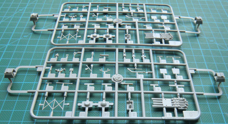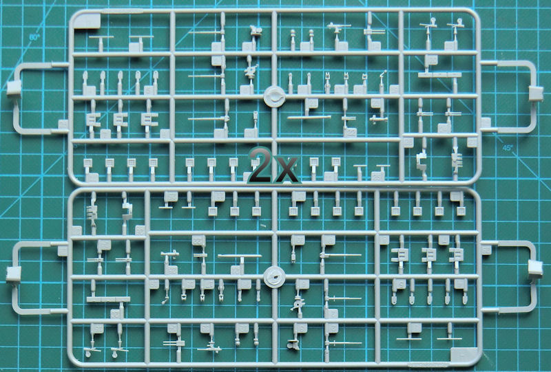 Die Teile sind in der bekannten TRUMPETER-Qualität und die meisten Spritzlinge sind aus dem Z-25-Kit bekannt. Hier wurden nur die notwendigen Teile beigefügt. Der Bau beginnt mit den vier einzelnen 15-cm-Geschützen. Anschließend müssen beim Hauptdeck ein paar Bohrungen freigelegt werden.