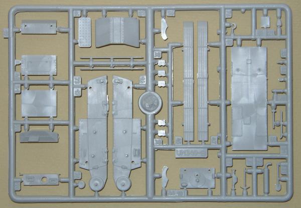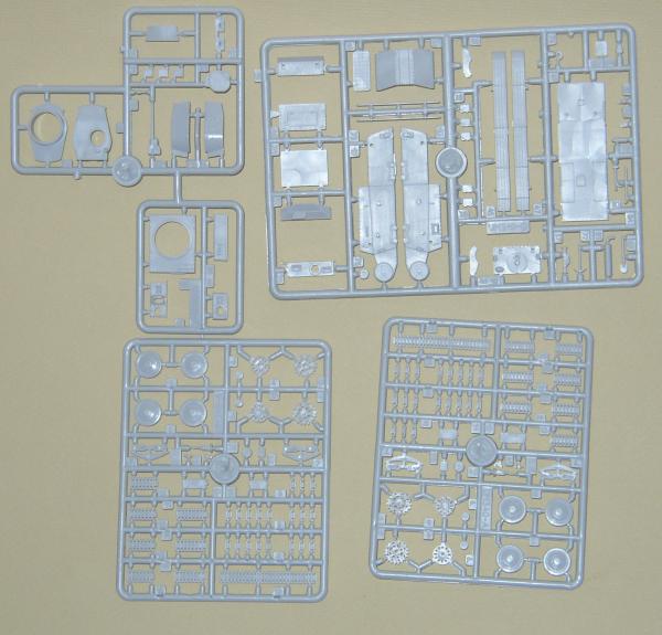 Bausatz: Wie schon auf dem Titelbild ersichtlich handelt es sich um eine Version mit "gekurvter" Fahrerfront. Die Geschoßabweisleiste konnte ich nicht entdecken. Die Bausatzteile machen einen recht ordentlichen Eindruck und sind Meilen vom Attack - Modell entfernt. Selbst die Ketten haben auf der Innenseite Zähne. Einen ordentlichen Eindruck hinterlässt auch die Bauanleitung bei mir. Nur bei den Bemalungshinweisen habe ich meine Bedenken.