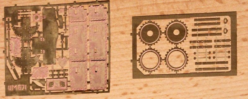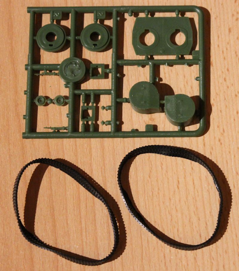 Alle Teile sind sauber wiedergegeben, man muss lediglich einige wenige Fischhäute und Grate entfernen. Die Ätzteile sind gut überlegt und verfeinern das Modell sehr. Die Gummiketten sind schon fertig, so dass man sich das Verkleben spart. Mir persönlich wären Plasteketten lieber gewesen.