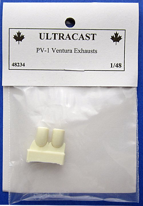 Der zweifellos sehr gute Revellbausatz der Lockheed PV-1 Ventura wird nach den beiden Radsätzen von den Kanadiern auch mit Ersatzteilen für die Auspuffstutzen bedacht. Sicher kann man diese auch selbst ausfräsen, aber für ein paar kanadische Dollar hab ich mir den Satz einfach mal mitbestellt. Man sieht den Teilen an, dass sie handgemacht sind, aber das geht in Ordnung.