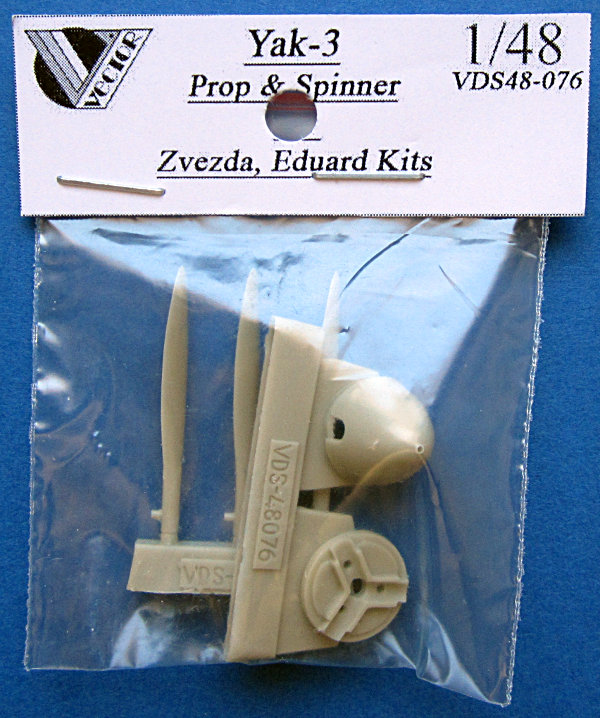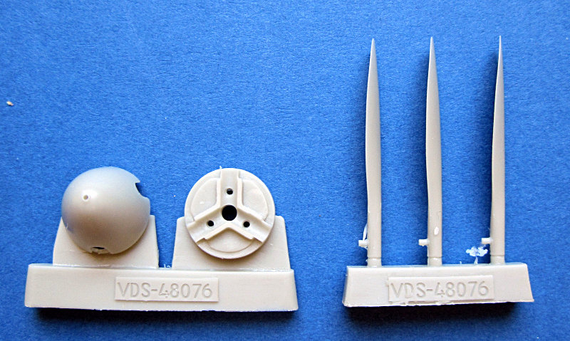 Wie erwähnt ist der Bausatz von Zvezda (First Look) grundsätzlich sehr gut. Allerdings hat er viele Merkmale mit dem 1/72er Snap-Kit gemein. Dieser Satz ersetzt den einteiligen Bausatzpropeller durch wesentlich filigranere Spinner und Propeller. Diese sind von hervorragender Qualität und speziell für den Zvezda Bausatz designed.