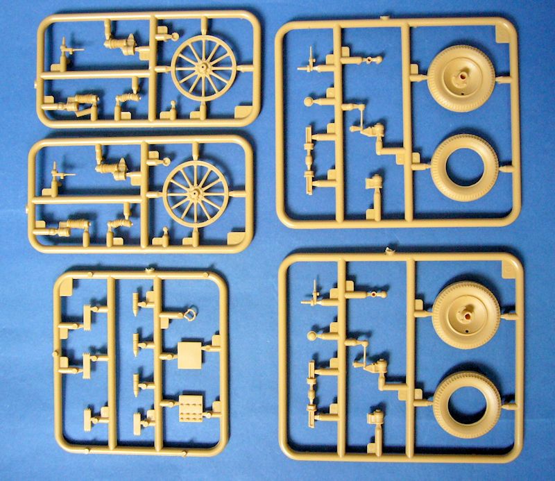 Je zwei Sätze Holzspeichen- und Vollgummiräder, Munition und Munitionskisten. Eine sehr schöne Idee ist es auch, dass man zwischen den Speichenrädern aus Holz und Gummibereifung wählen kann, wodurch man für die Gestaltung hinsichtlich Einsatzzeitraum und Kriegsschauplatz des Geschützes alle Möglichkeiten hat.