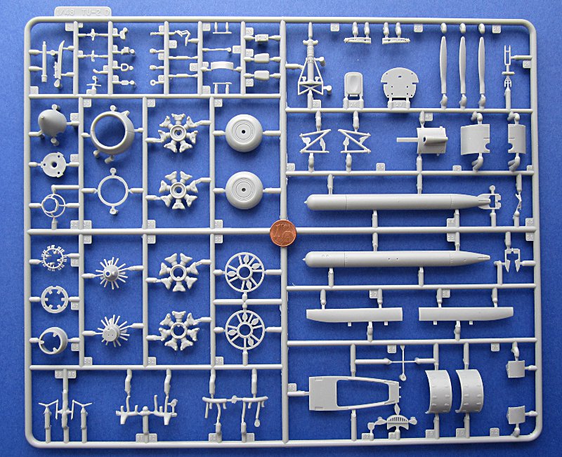 Erstaunlicherweise zeigen die kleineren Spritzlinge sehr schöne Details, die dann aber in den grobschlächtigen Rumpf eingebaut werden müssen. Hier empfiehlt sich eine Überarbeitung des Rumpfes. Vielleicht gibt's ja auch noch mal ein Zubehör-Cockpit für die Tu-2. Christoph Schnarr wies bei einem Gespräch darauf hin, dass die Waffenstand dem der IL-2 entspricht und daher möglicherweise durch den Eduard Brassin Satz aufgewertet werden könnte. Spannend dürfte der Aufbau der Motoren und deren Halterungen werden. Hier sollte größte Sorgfalt walten, damit die Ausrichtung am Ende passt.