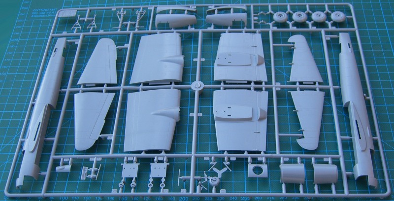 Der stabile Stülpkarton enthält drei hellgraue Spritzlinge, einen separaten (!) schützenden Karton für die Klarsichtteile, eine gut gemachte Bauanleitung sowie einen Decalbogen.