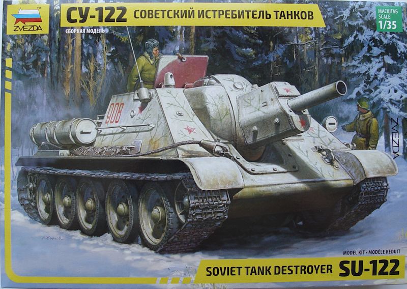 Bausatz: Die Firma Zvezda hat seine Panzermodellpalette der T34 Reihe um das Modell einer SU 122 erweitert, dass sich den Mitbewerbern von Tamiya (1976) und Miniart (2016) stellen muss. Allerdings dürfte es für eine russische Modellfirma auch ein Muss sein, um auf dem heimischen Markt mit einer bekannten SFL der Roten Armee zu punkten.