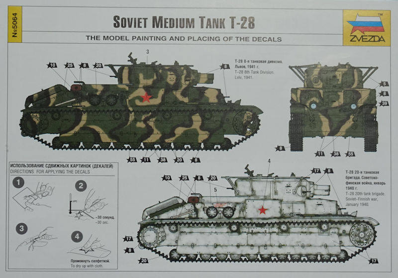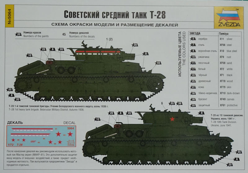 Fazit: Zvezda liefert hier einen sehr komplexen Bausatz des T-28 in 1/72 für den fortgeschrittenen Modellbauer. Die Bemalungsvarianten sind abwechslungsreich. Für diesen Bausatz sollte man schon ein wenig Erfahrungen mitbringen.