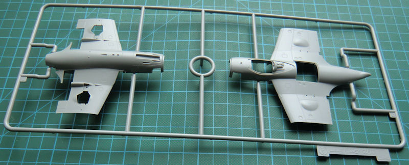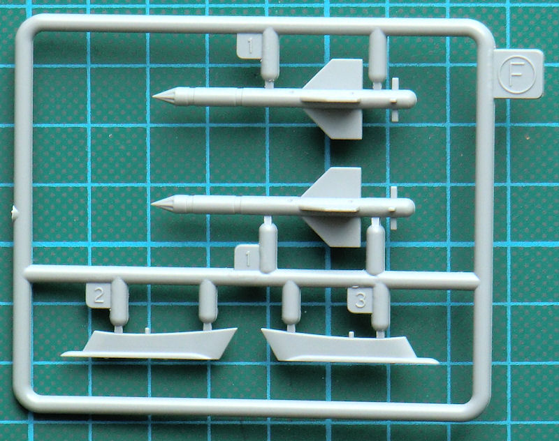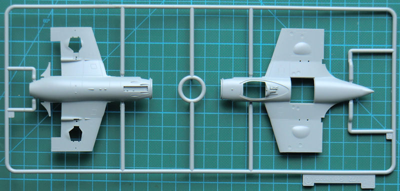 Die Grenzschichtzäune sind aus jeweils einem Fotoätzteil. Das kennt man auch von den CMR-Resin-Kits der Venom. Als Option können die Tragflächenenden angeklappt werden. An den Flächenwurzeln werden an entsprechenden Trägern die beiden Blue Jay-Raketen befestigt. Die Klarsichtkanzel ist leider nur einteilig. Das passt nicht zum restlichem Bausatz.