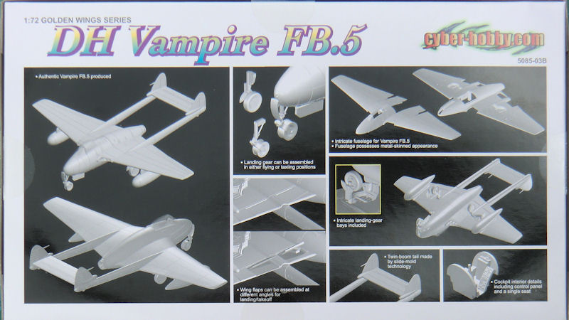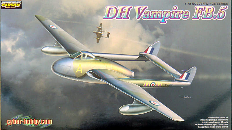 Vorbild: Die D.H. 100 entstand ab 1941 speziell für das Goblin Strahltriebwerk. Der erste Prototyp flog am 20. September 1943. Kurz vorm Ende des WK II flog die erste Serienmaschine. Bei ihrem Erscheinen war die Vampire der schnellste britische Jäger.