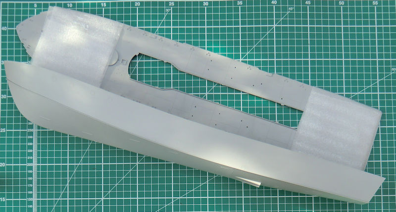 Die Abspritzung der Bauteile entspricht dem heutigen Niveau von TRUMPETER und die Aufteilung ist sehr durchdacht. Insbesondere begeistert nach wie vor der einteilige 542 mm lange Rumpf. Das lässt diesen Bausatz auf für RC-Modellbauer interessant werden.