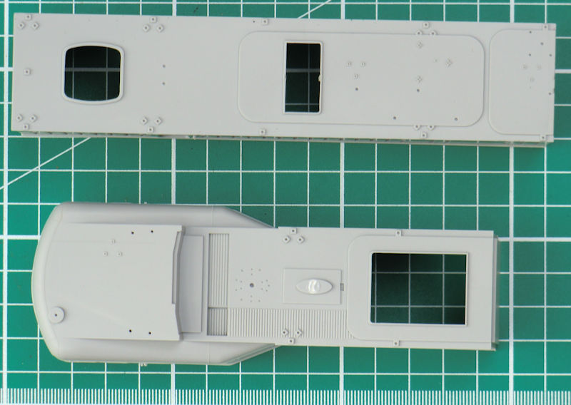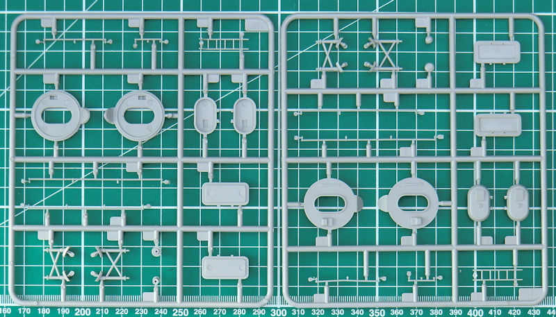 Gut gemacht sind natürlich auch die zwei Geschütztürme. Hier kann man höchstens nur noch die Läufe durch solche aus Metall ersetzen. Ein paar Klarsichtteile gibt es für die Brücke. Diverse Türen werden einzeln angeklebt und das auch alternativ in geöffneter Position.
