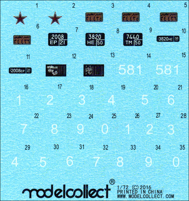 Die zwei neuen photogeätzten Platinen (und die beiden Fahrerfiguren) des Masterlevel-Bausatzes sind hier nicht enthalten. Die grundlegenden Spritzgussteile entsprechen denen der Iskander, 9K720 aus dem Moco-Bausatz MA72011 bzw. 9K723 aus dem Moco-Bausatz 72105. Hinzu gekommen sind die Spritzlinge für die R-500 und ihre Startanlagen, dafür fehlen die spezifischen Spritzlinge für die Raketen der 9K720 bzw. 9K723.