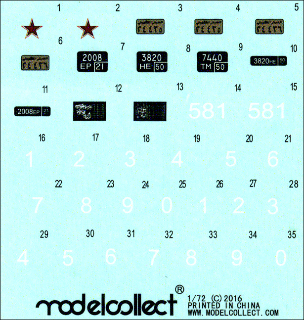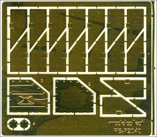 Der Problematik der gut detaillierten Gummiräder ist eine erhöhte Aufmerksamkeit zu schenken; bei anderen Bausätzen wie E-50, E-75 und diversen T-64, T-72 und T-80 hat man die Gummiketten bereits durch Segmentketten aus Plast ersetzt (was ich sehr begrüße), es wäre schön wenn man die Gummiräder durch welche aus Plast ersetzt bzw. als 2. Alternative mit anbietet. Die geätzten Platinen sehen gut aus und enthalten mehr Bauteile, als man laut Bauanleitung verbauen soll. Dabei ist der recht prägnante Schutz des Dachscheinwerfers (PE 72037-4) doch sehr willkommen. Dafür fehlen die markanten Scheinwerferschutzgitter, diese findet man erst auf der Platine 72043 und diese ist erst in den neuen Modellen MAZ 7911 (Moco 72064) und MAZ 7410 (Moco 72048) vorhanden. Vielleicht wird sie ja späteren Auflagen beigelegt. Die Faltung der Raketenflügel sollte man sich in der Fachliteratur anschauen, die ist hier im Modell falsch. Das wars aber schon mit der Maulerei.