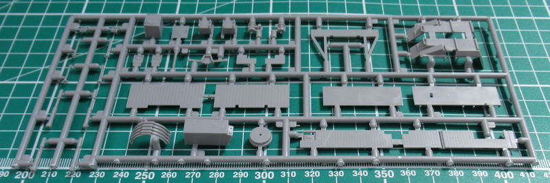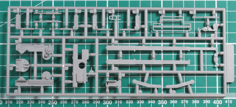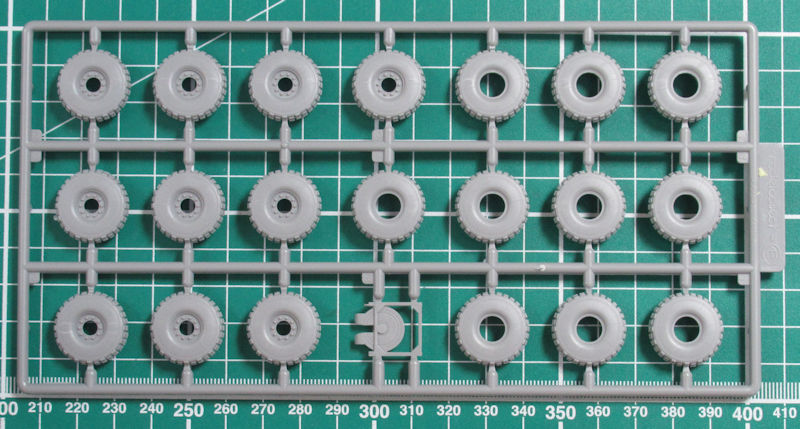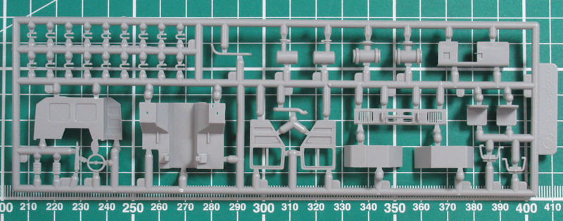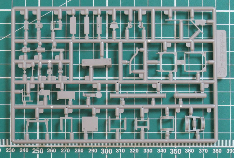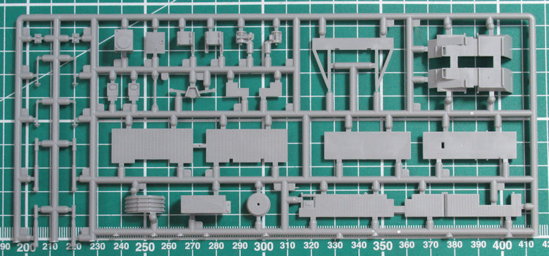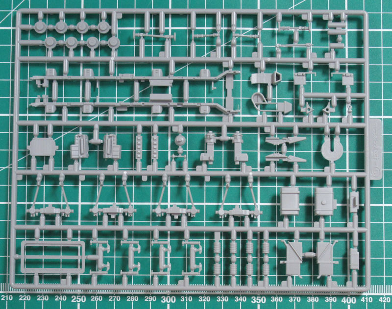 Die Abspritzung ist toll und man sieht, dass bei der Herstellung modernste Technologien angewandt wurden. Man schaue sich nur mal das einzelne Fahrerhaus an. Ungewöhnlich sind die Gummireifen für den Trailer. Ansonsten entstehen alle anderen Räder aus zwei Hälften. Der Bau beginnt mit dem komplexen Fahrgestell der Zugmaschine. Hier gibt es alle Details die man sich wünscht und vorstellen kann. Der runde Kraftstofftank wir aus zwei Teilen zusammengeklebt. Natürlich gibt es auch einen später nicht mehr sichtbaren 10-Zylinder-Motor. Leider fehlen auch hier Informationen zur Farbgebung.