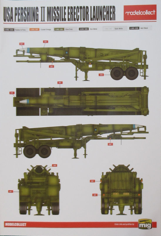 Fazit: Ein toller Bausatz der Pershing II samt Transport- und Startfahrzeug von modelcollect in 1/72. Schade, dass man in China nicht an passende US Army Kennzeichen für das Zugfahrzeug gedacht hat. Aufgrund der hohen Teileanzahl ist dieser Bausatz nur für fortgeschrittene Modellbauer zu empfehlen.